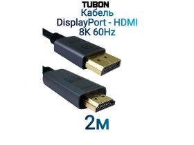 Кабель TUBON DisplayPort - HDMI 8K 60Hz, ПВХ, Чип PS196 OD5.0 DH03 2м 102598796442
