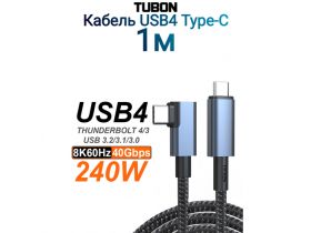 Кабель TUBON USB4 Type-C L - Type-C USBC Thunderbolt 4 40Gb 240W 8K UU06 1м 103109909056