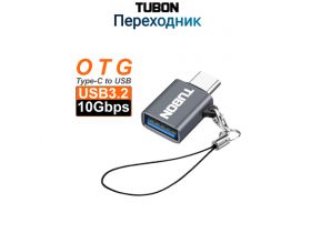 Переходник адаптер OTG TUBON USB3.2 Type-C - USB 10Gbps 60W AUS01 Серый 103630973211