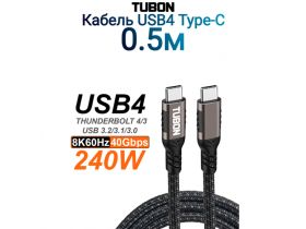Кабель TUBON USB4 Type-C - Type-C USBC Thunderbolt 4 40Gb 240W 8K UU08 0.5м 103566618210