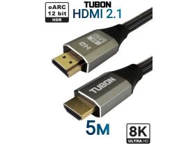 Кабель TUBON HDMI - HDMI 2.1 8K 60Hz, 4k 120Hz, HDR, eARC, Нейлоновая оплетка HH01 5м 103703620318