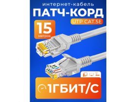 Патч корд 15 м кат 5е, интернет кабель RJ45 Cat.5e UTP, сетевой Ethernet Lan для соединения интернета роутера, серый 4710324419