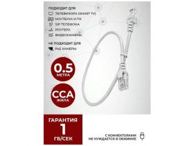 Патч-корд 0.5 метра, медный, интернет кабель RJ-45, категория 5e, U/UTP, 28 AWG, сетевой Enternet Lan для соединения интернета 0.5м, серый 102811266533