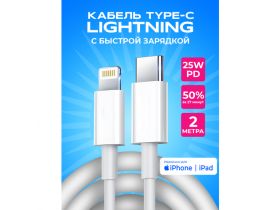 Провод для айфона, белый, 2м, Type C - Lightning для iPhone, зарядка и передача данных, кабель для айфона, как оригинал 4398872926