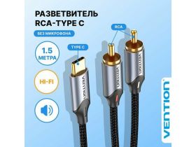 Vention Кабель разветвитель Type C M (папа) RCA M (папа) x 2 для наушников, колонок, AUX, 1.5 м, арт. BGUHG 103710807706