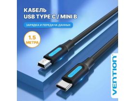 Кабель питания USB type c для зарядки и передачи данных Vention шнур 1.5м usb 2.0 CM/mini-B 5pin, арт. COWBG 102791621652