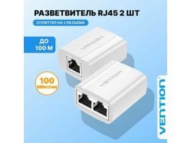 Vention Сплиттер RJ45 F (мама) / RJ45 F (мама) х 2 8p8c для интернет-кабеля на 2 порта, разветвитель Ethernet для патч-кордов, 2 шт, арт. IPTW0 101848188154