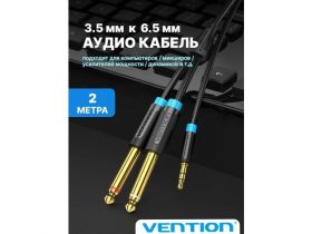 Aux кабель Jack 3.5 -Jack 6.3 2 штекера Моно 2 метра Vention переходник для гарнитуры и акустических систем, арт. BACBH 922478675