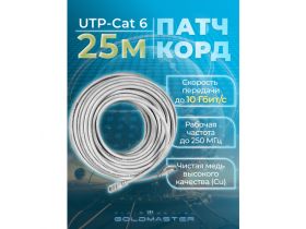 Патч-корд GoldMaster 25м, UTP cat6, медь, RJ45, Ethernet, LAN, серый, NA102-25m, контакты Blade позолота 03MU 102630007395