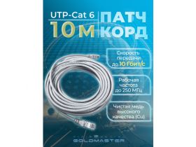 Патч-корд GoldMaster 10м, UTP cat6, медь, RJ45, Ethernet, LAN, серый, NA102-10m, контакты Blade позолота 03MU 102630007398