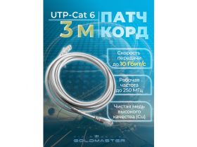 Патч-корд GoldMaster 3м, UTP cat6, медь, RJ45, Ethernet, LAN, серый, NA102-3m, контакты Blade позолота 03MU 102630007392