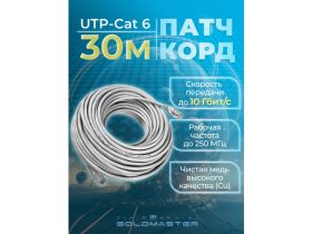Патч-корд GoldMaster 30м, UTP cat6, медь, RJ45, Ethernet, LAN, серый, NA102-30m, контакты Blade позолота 03MU 102630007394