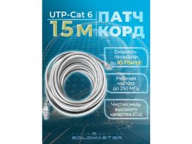Патч-корд GoldMaster 15м, UTP cat6, медь, RJ45, Ethernet, LAN, серый, NA102-15m, контакты Blade позолота 03MU 102630007397