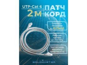 Патч-корд GoldMaster 2м, UTP cat6, медь, RJ45, Ethernet, LAN, серый, NA102-2m, контакты Blade позолота 03MU 102630007390