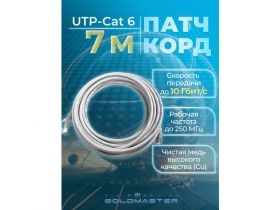 Патч-корд GoldMaster 7м, UTP cat6, медь, RJ45, Ethernet, LAN, серый, NA102-7m, контакты Blade позолота 03MU 102630007393