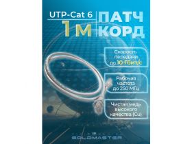 Патч-корд GoldMaster1м, UTP cat6, медь, RJ45, Ethernet, LAN, серый, NA102-1m, контакты Blade позолота 03MU 102630007391
