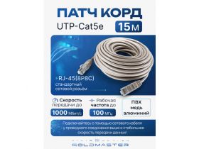Патч-корд 15 м Голд Мастер UTP 5е RJ45 интернет кабель 15 метров LAN сетевой Ethernet патчкорд серый (NA102--15M), контакты blade с позолотой 03FU 101974912781