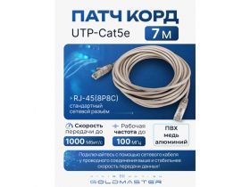 Патч-корд 7 м Голд Мастер UTP 5е RJ45 интернет кабель 7 метров LAN сетевой Ethernet патчкорд серый (NA102--7M), контакты blade с позолотой 03FU 101974912786