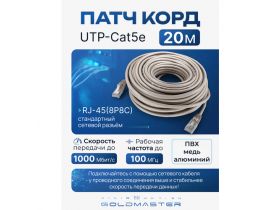 Патч-корд 20 м Голд Мастер UTP 5е RJ45 интернет кабель 20 метров LAN сетевой Ethernet патчкорд серый (NA102--20M), контакты blade с позолотой 03FU 101974912782