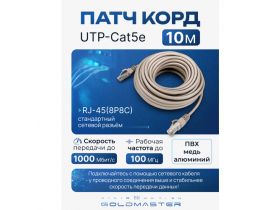 Патч-корд 10 м Голд Мастер UTP 5е RJ45 интернет кабель 10 метров LAN сетевой Ethernet патчкорд серый (NA102--10M), контакты blade с позолотой 03FU 101963648729