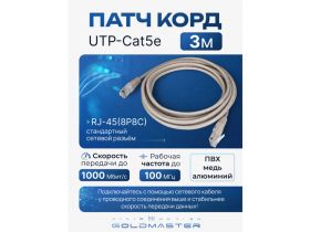 Патч корд 3 м Голд Мастер UTP 5е RJ45 интернет кабель 3 метра LAN сетевой Ethernet патчкорд серый (NA102--3M), контакты blade с позолотой 03FU 102616530984