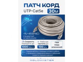 Патч корд 30 м Голд Мастер UTP 5е RJ45 интернет кабель 30 метров LAN сетевой Ethernet патчкорд серый (NA102--30M), контакты blade с позолотой 03FU 102616530983