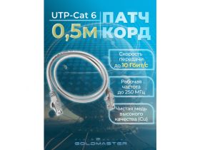 Патч-корд GoldMaster 0,5м, UTP cat6, медь, RJ45, Ethernet, LAN, серый, NA102-0,5m, контакты Blade позолота 03MU 102618584504