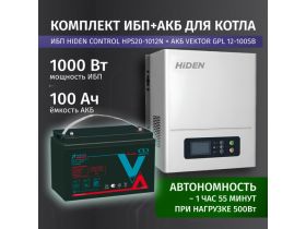 ИБП для котла с аккумулятором ИБП Hiden Control HPS20 1000Вт, 12В + АКБ Vektor Energy GPL 100Ач, 12В / бесперебойник для котла отопления / источник бесперебойного питания 958132413
