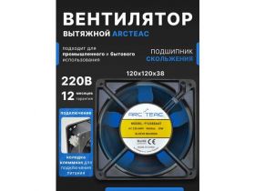 Вентилятор осевой ARCTEAC F1238SXAT-TB 120х120х38мм 230В AC 0.14А 161куб. м/ч 20Вт скольжения 2700об/мин клемма, 1 шт 4328204436