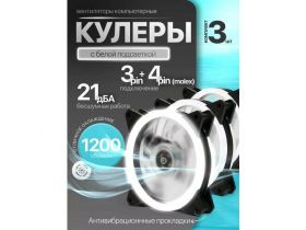 Кулеры 120мм LED для ПК белый 3шт 4331332746