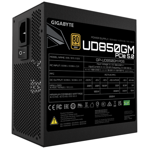 Найти - Блок питания Gigabyte UD850GM PG5 GP-UD850GM PG5 850W, 80Plus, Gold, Полностью модульный