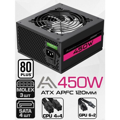 Найти - Блок питания для ПК 450W Черный ATX ZIRCON AA-450, 20+4pin 4+4pin 1*6+2pin 4*SATA 3*MOLEX вентилятор 120мм