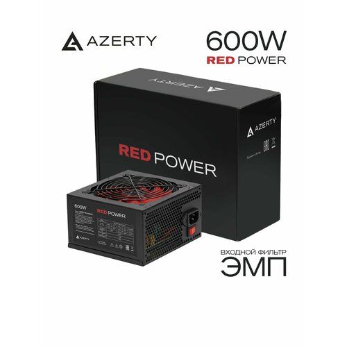 Блок питания Azerty RP-600V1 форм-фактора ATX обладает максимальной выходной мощностью 600 ватт и обеспечивает надежное питание при использовании в игровых компьютерах начального уровня, не требующих высокой мощности.