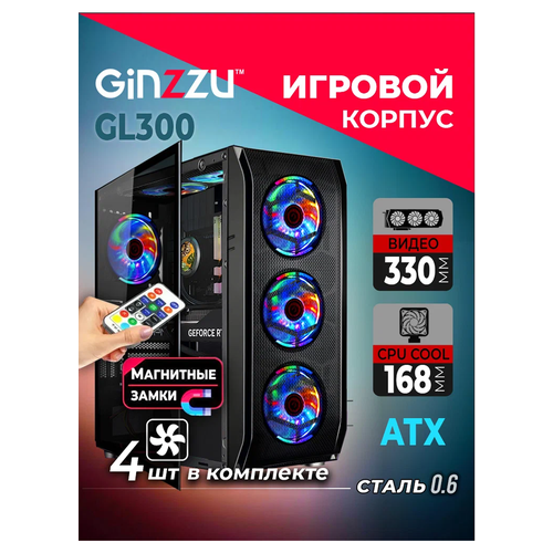 Найти - Корпус Ginzzu GL300 закаленное стекло на петлях с магнитным замком, места для водяного охлаждения