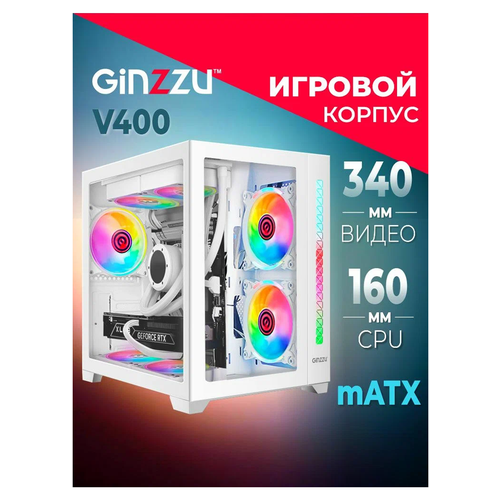 Найти - Корпус Ginzzu V400 mATX кубик, закаленное стекло, RGB подсветка
