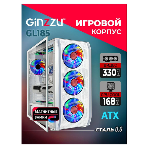 Найти - Корпус Ginzzu GL185 закаленное стекло на петлях с магнитным замком, белый