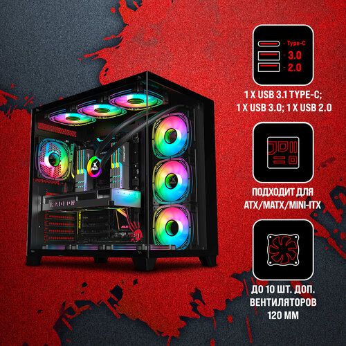 - Возможность установки доп. вентиляторов на боковой панели 3x120 мм