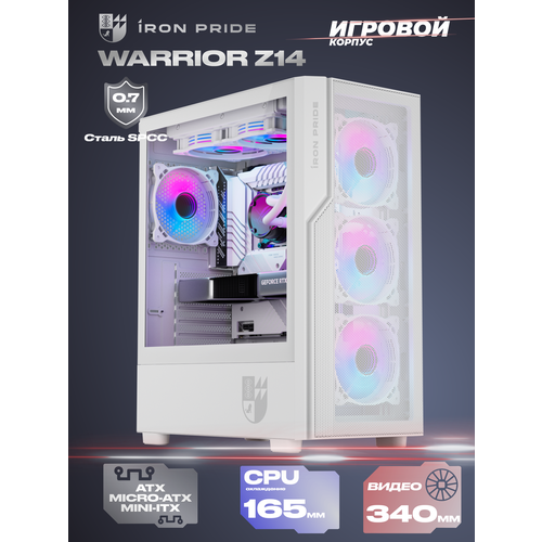 Warrior Z14 White предлагает просторное внутреннее пространство для установки видеокарт и других компонентов, что позволяет вам собрать мощный игровой набор. Множество отсеков и продуманная система управления кабелями упрощают процесс сборки, а также помогают поддерживать порядок в районе материнской платы и блока питания.