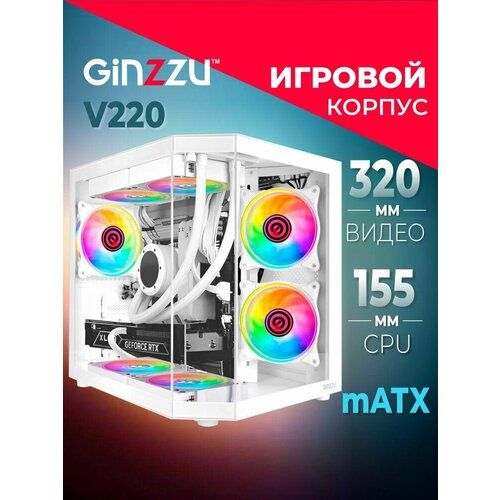 Найти - Корпус Ginzzu V220 mATX кубик, закаленное стекло (Белый)