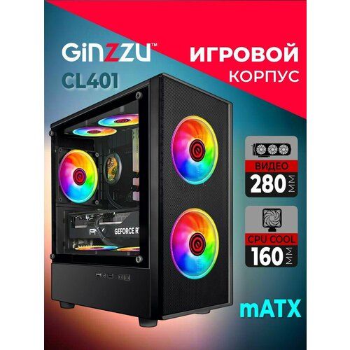 Найти - Корпус Ginzzu CL401 mATX закаленное стекло боковая панель, передняя сетка