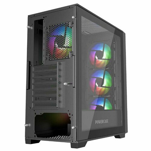 Powercase Корпус ByteFlow Black, Tempered Glass, 4x 120mm ARGB fans, ARGB HUB, чёрный, ATX CBFB-A4