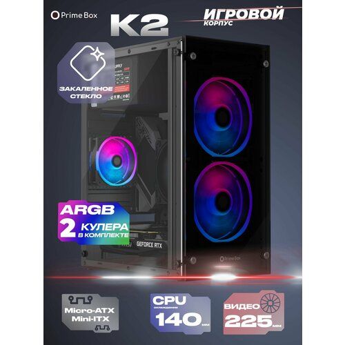 Корпус черный Prime Box K2 — это корпус микро atx с продуманной компоновкой, идеально подходящий для сборок с ограниченным пространством. Отлично подойдёт как игровой корпус для ПК, так и для домашнего или офисного ПК.