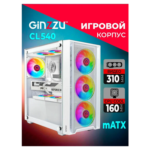 Найти - Корпус Ginzzu CL540 mATX закаленное стекло боковая панель, передняя панель сетка