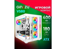 Корпус Ginzzu V580 ATX кубик, закаленное стекло, RGB подсветка 102768458726