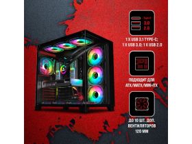 Powercase Корпус ByteFlow Black, Tempered Glass, 4x 120mm ARGB fans, ARGB HUB, чёрный, ATX CBFB-A4 124545540