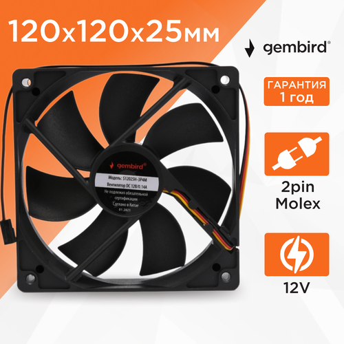Найти - Вентилятор для корпуса Gembird S12025H-3P4M, 0.14 А, чёрный