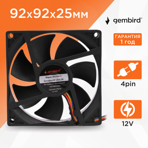 [Вентилятор] Gembird Вентилятор для корпуса 92x92x25, гидродинамический, 4 pin, провод 30 см (D9225HM-4)