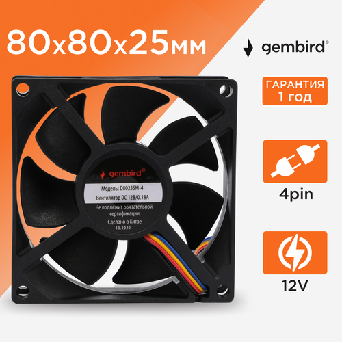 Gembird Вентилятор для корпуса 80x80x25, втулка, 4 pin, провод 30 см (D8025SM-4)