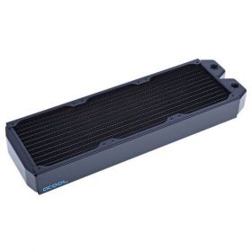 Радиатор имеет размеры 400x124x46 мм, поэтому он отлично подойдет для установки в огромное количество корпусов для ПК, имеющихся на рынке. Отметим, что данная модель радиатора совместима с тремя вентиляторами, размеры которых должны быть 120x120 мм. Выполнен радиатор полностью из меди. Подойдет модель и пользователям, которые любят стильные комплектующие — черный радиатор, имеющий синие вставки, будет отлично смотреться в любой системе.