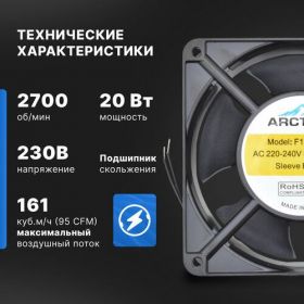 Найти - Вентилятор осевой для сети переменного тока кулер ARCTEAC F1238SXAL 120x120x38мм 230В AC подшипник скольжения